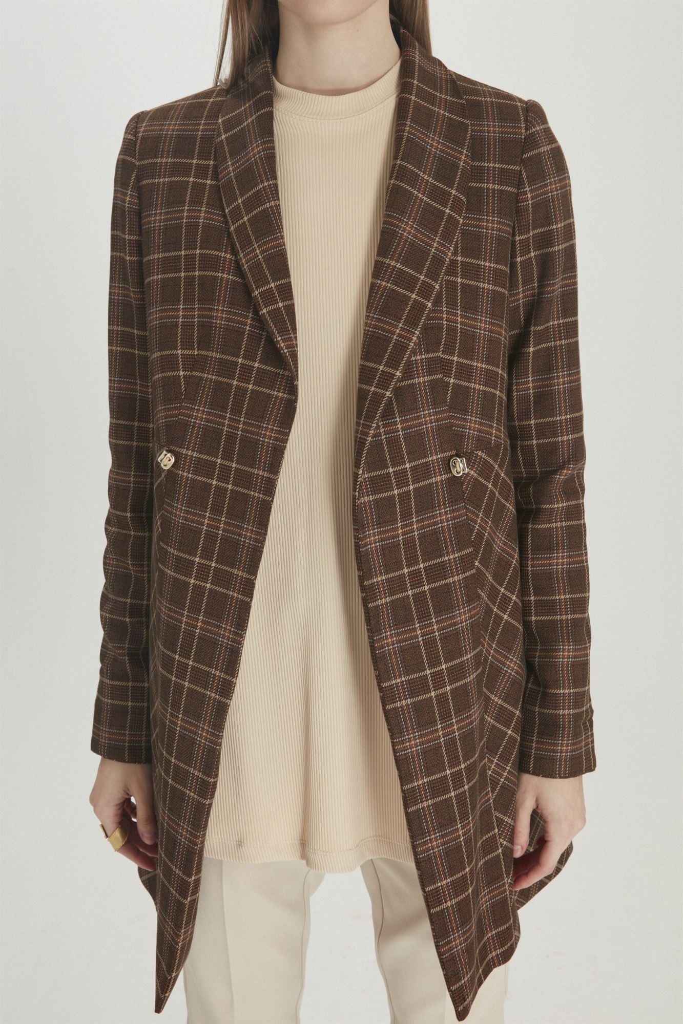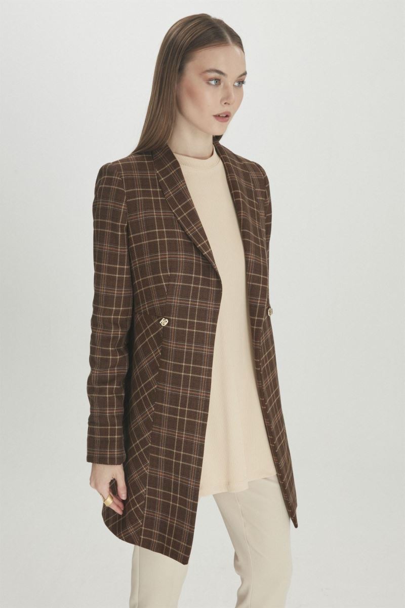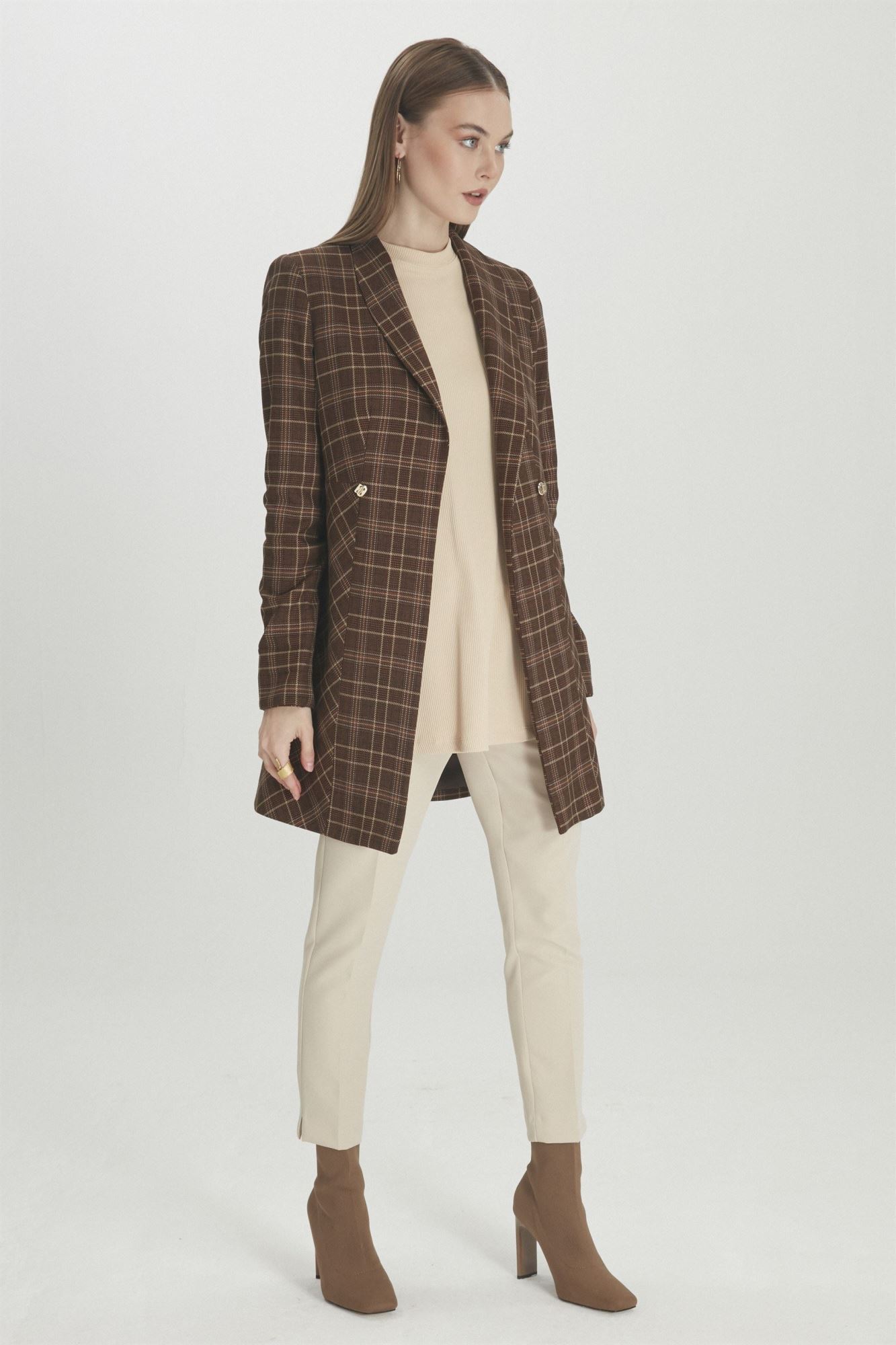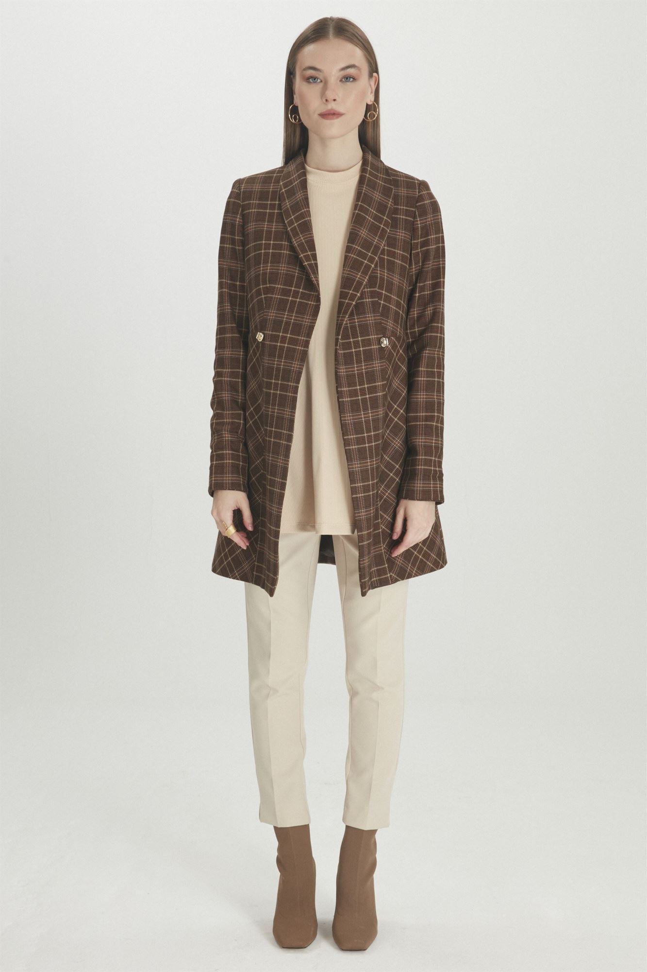 Çizgili Ceket Bluz Kahve İkili Takım TK-1053 Özellikleri