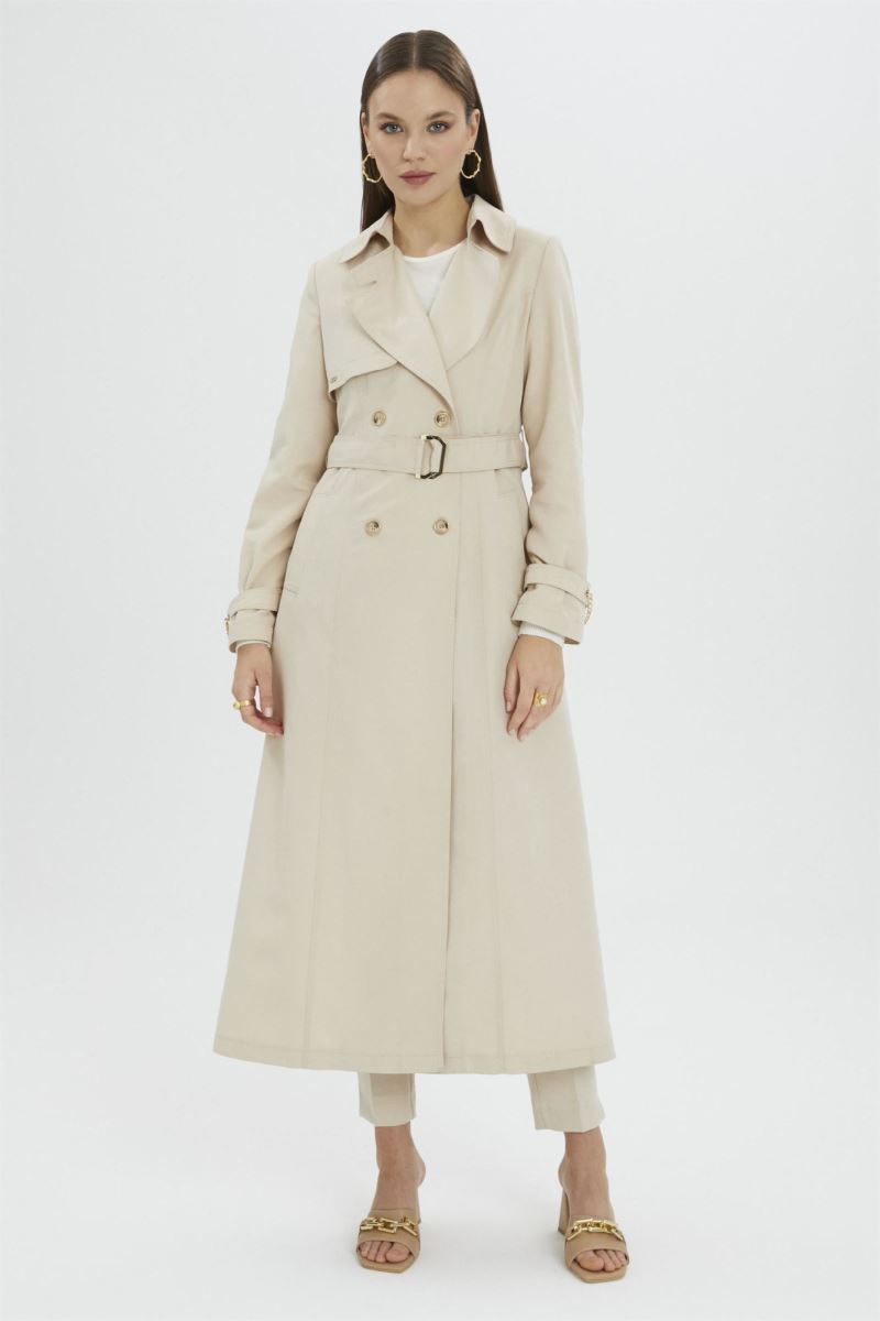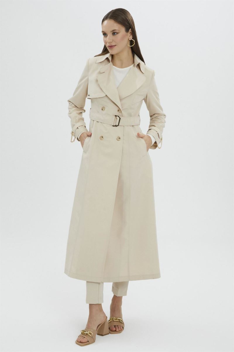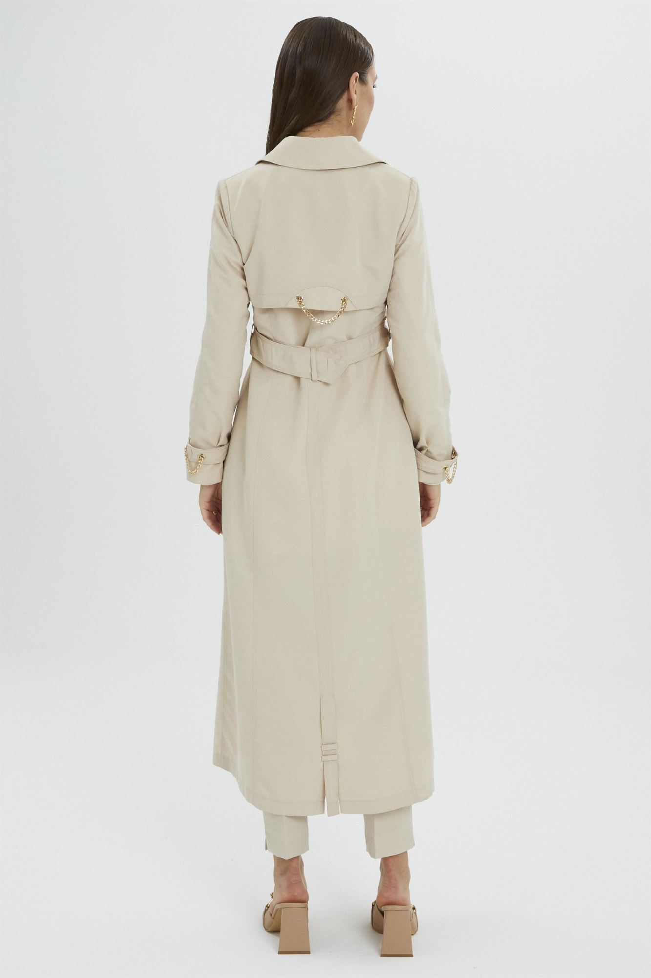 SİYAH ZİNCİR VE KEMER DETAYLI TAŞ TRENÇKOT